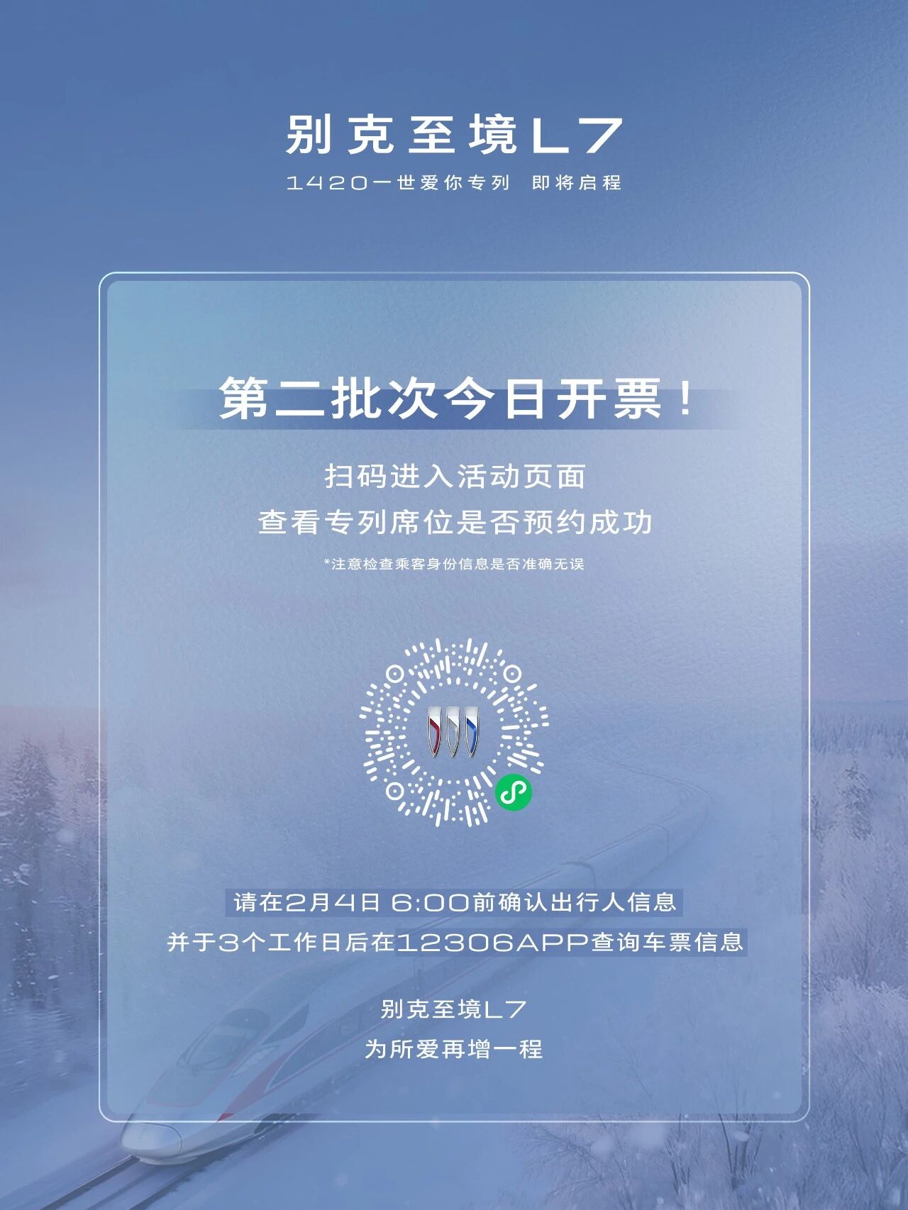 别克至境L7 1420专列第二批席位今日开票